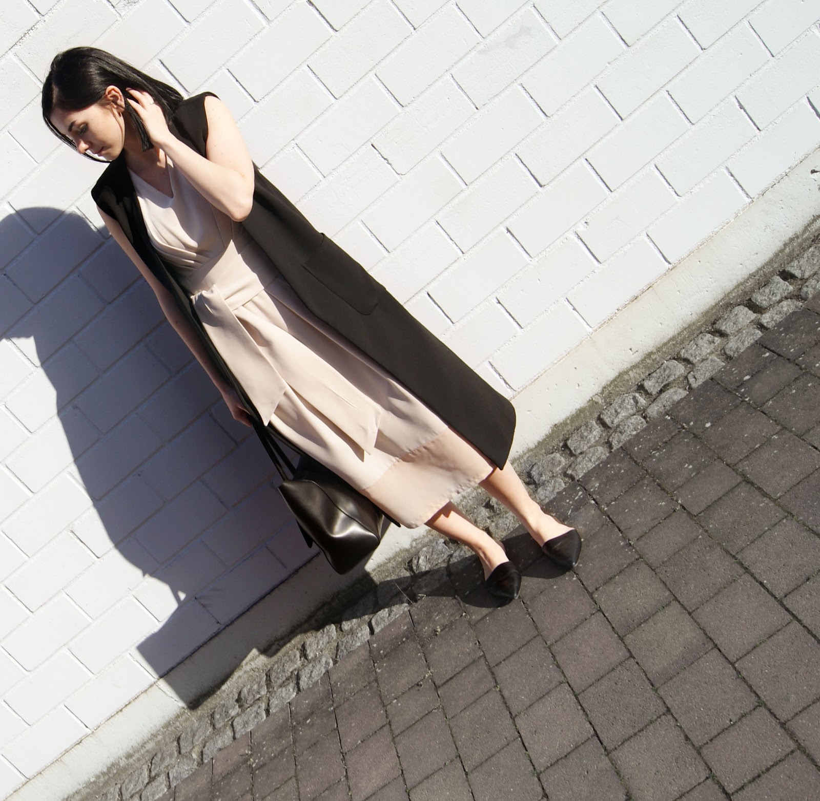Trans-seasonal temperatures call for layered sets. This time flexibility is the key to survive this wavering weather conditions. Maxi dress combined with a long waistcoat and sliders is right now one of my fave spring proposition.