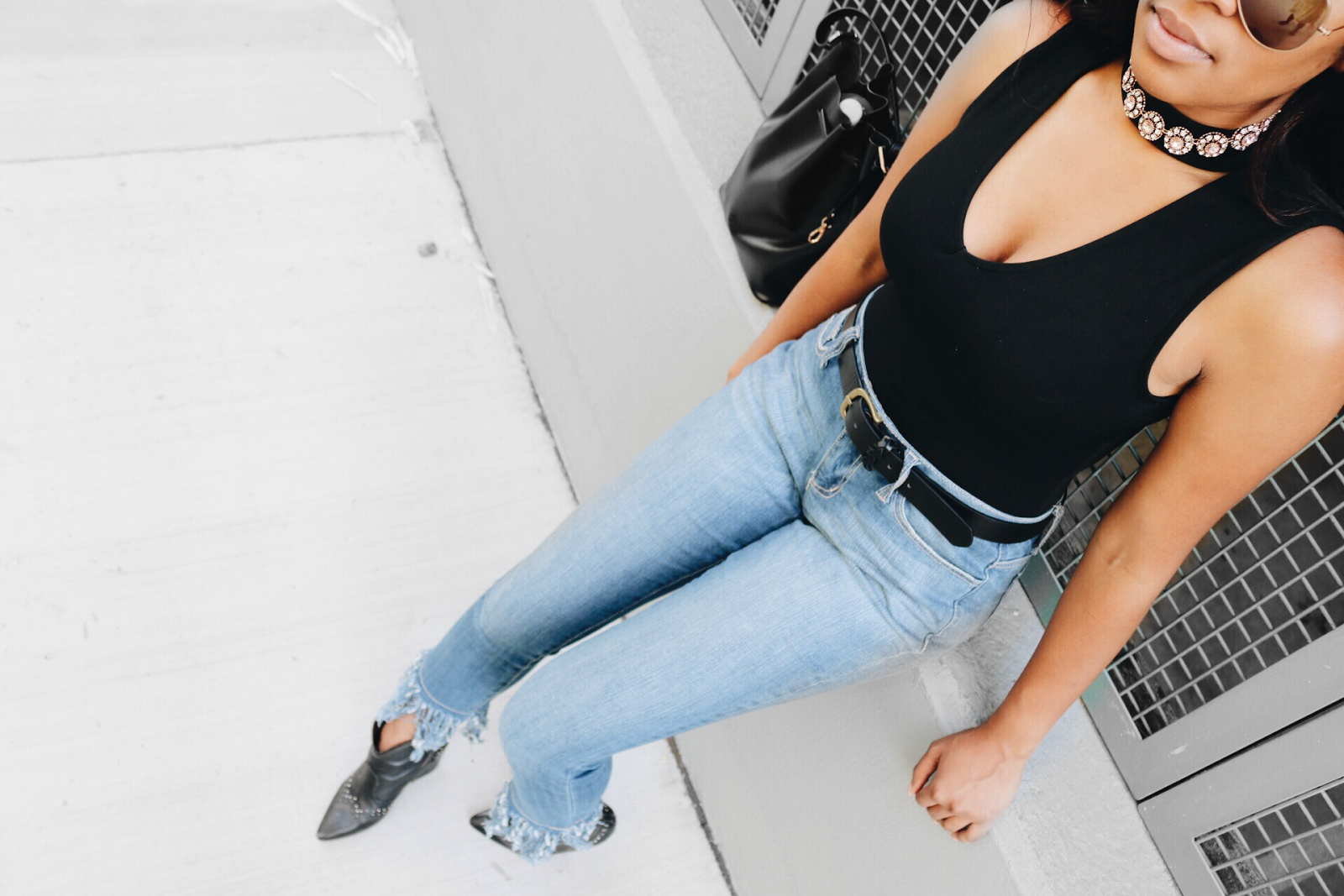 Hey Hey! I hope you all had a great Labor Day Weekend! I spent most of the weekend resting and trying to get rid of my cold! I can't believe that Summer is almost over, it definitely wasn't very warm. I hardly left the house, but this was my outfit of choice for Labor Day. I went with a choker bodysuit, frayed denim jeans and black booties. You can shop the look at the end of the post! Xo