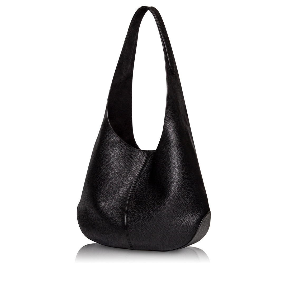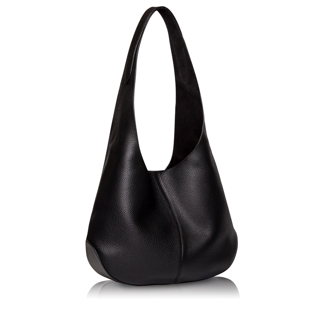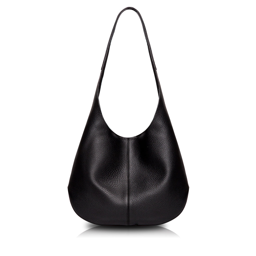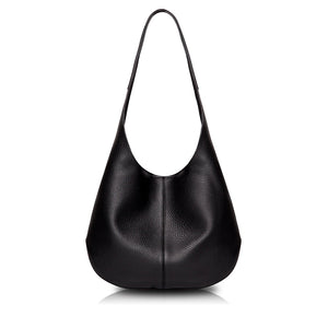 • With its gracefully curved shape, the Luna's fluid silhouette, rendered in Black, embodies a delicate balance between subtlety and statement. Its architecture of clean lines and natural pebbled leather exudes a sense of timeless elegance;